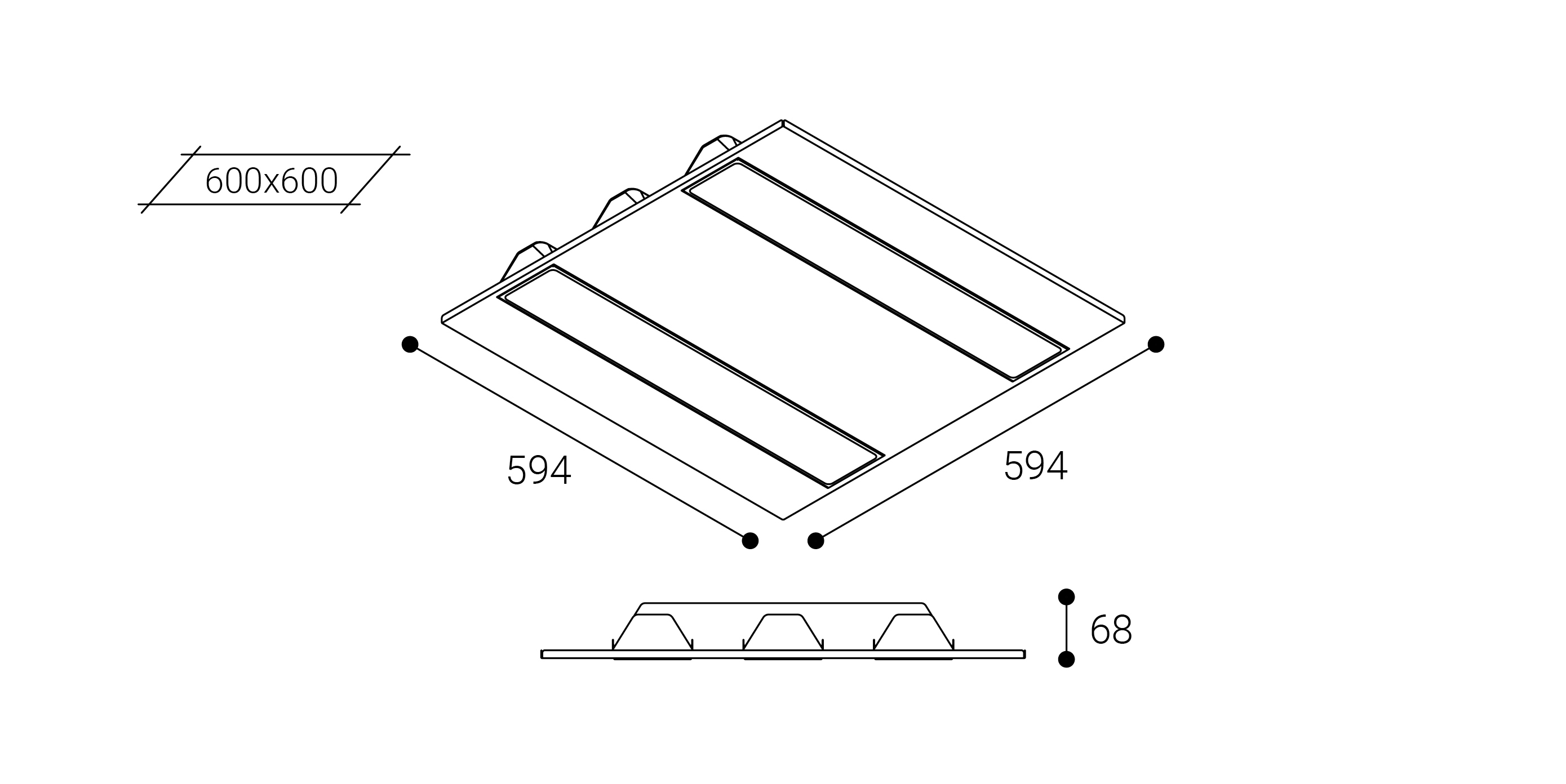 Nassel ref. NS23DB, fabricado por Normalit. Flujo: 3400lm. CRI: 80%. Temperatura de color: 3000K. Ángulo de apertura: 73º. Dimensiones: 594x594x68mm. Modo de instalación: Empotrada para techo modular directa. Versión: DALI 1. Eficiencia: 80,3%. Expectativa de vida: 60.000h L70B10. Elipses de MacAdam: 3. UGR: 16. Alimentación: 220-240V 50/60Hz. Potencia: 24W. Consumo: 29,5W. Factor de potencia: 0,93. Clase: II. IP: 20-44. IK: 04. Hilo incandescente: 850ºC. Descripción de materiales: Cuerpo: Chapa de acero galvanizado. Envolvente: Policarbonato. Difusor: Policarbonato microprismático. Óptica: Aluminio inyectado. Acabado: Blanco. Peso: 2,9kg. Temperatura de trabajo: de -20ºC a 40ºC