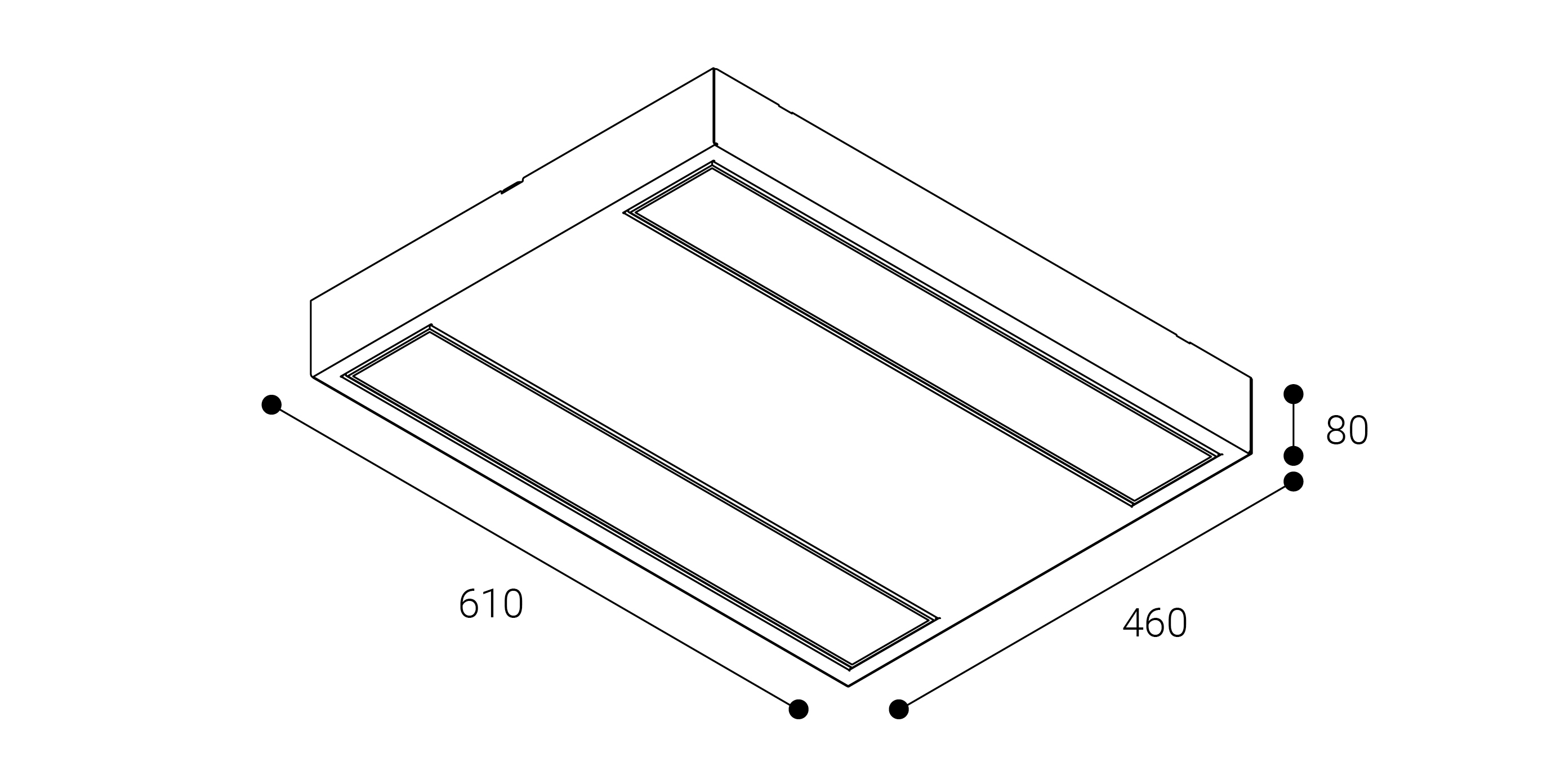 Nassel S ref. NA23B, fabricado por Normalit. Flujo: 3400lm. CRI: 80%. Temperatura de color: 3000K. Ángulo de apertura: 73º. Dimensiones: 610x460x75mm. Modo de instalación: Adosada techo directa. Versión: Estándar. Eficiencia: 80,3%. Expectativa de vida: 60.000h L70B10. Elipses de MacAdam: 3. UGR: 16. Alimentación: 220-240V 50/60Hz. Potencia: 24W. Consumo: 29,5W. Factor de potencia: 0,95. Clase: II. IP: 30. IK: 04. Hilo incandescente: 850ºC. Descripción de materiales: Cuerpo: Chapa de acero galvanizado. Envolvente: Policarbonato. Difusor: Policarbonato microprismático. Óptica: Aluminio inyectado. Acabado: Blanco. Peso: 4,8kg. Temperatura de trabajo: de -20ºC a 40ºC